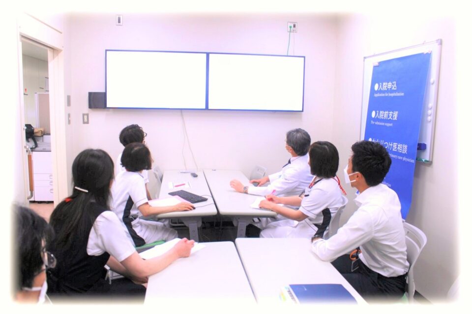 地域包括ケアシステムの運用により、医療は病院完結型から地域完結型へと変革され、入院前から退院後の生活を意識した関わりは重要となっています。退院調整看護師や医療ソーシャルワーカーは、外来部門や病棟看護師、退院調整看護師と連携し、退院支援が必要な患者さんの情報共有を行い、様々なニーズや課題を持つ患者さん・ご家族に対して、意思決定支援や課題解決を行っています。また患者さん・ご家族が安心して生活できるよう院内外の多職種と連携し支援を「つなぐ」ことを大切に看護実践しています。